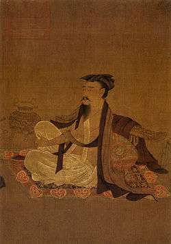 The Liang Dynasty (502-557), also known as the Southern Liang Dynasty, was the third of the Southern dynasties. Founded by the Xiao family, its first emperor was Liang Wu Di. In 531, his son Xiao Gang (later Emperor Jianwen of Liang) became Crown Prince, in which position Xiao Gang both practiced poetry and became a patron of poets. Of this poetic activity, especially important is the anthology New Songs from the Jade Terrace, compiled by Xu Ling (507-83), under the patronage of Crown Prince Xiao Gang (Later known as Emperor Jianwen).[18] The "Jade Terrace" is at least in part a reference to the luxurious palace apartments to which upper-class women were often relegated, one of the main conventional images being that of a beautiful concubine languishing away in lonely confinement, bereft of love. The New Songs from the Jade Terrace has been popularly translated into English. The collection contains over 600 pieces focused on the ideals of feminine beauty, and some of the poems are matter-of-factly homoerotic, describing the beloved young man involved in much the same terms as the female beloved is in other pieces. In other cases, a "hint of fetishism" is shown in poetic verses describing the objects associated with the men or women described in the poems; that is, their bedrooms and feast halls, the musical instruments, lamps or mirror-stands which they handle, or the fine stationary upon which they write their love notes.[19]